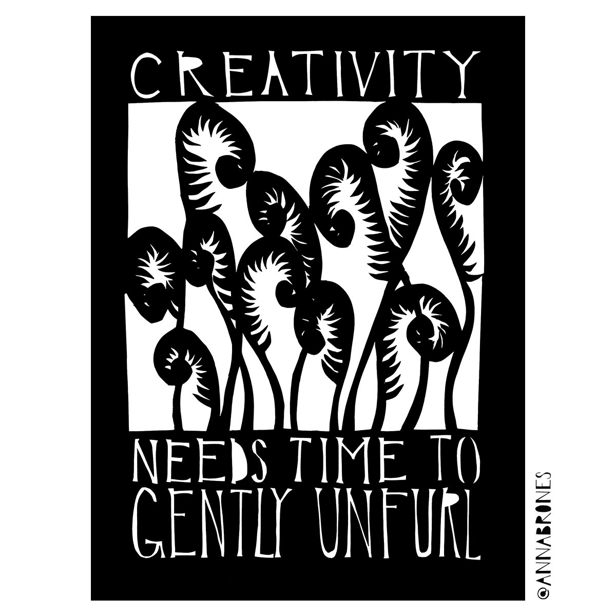 Creativity, art, and ideas, they all need time to marinate and come to fruition. Just like the plants around us, we need time to unfurl. The ferns don’t shoot up overnight, nor do the trilliums. They slowly come into being. They take their time, all at their own pace.