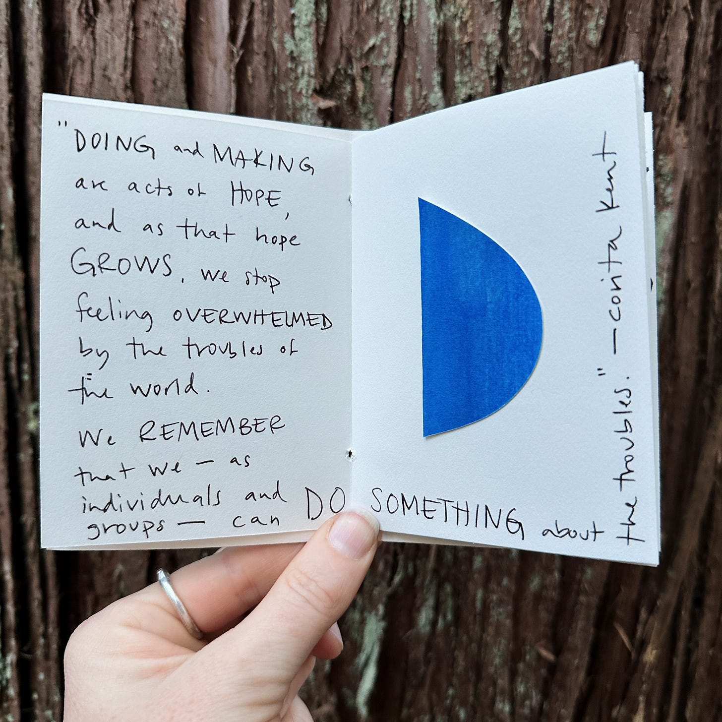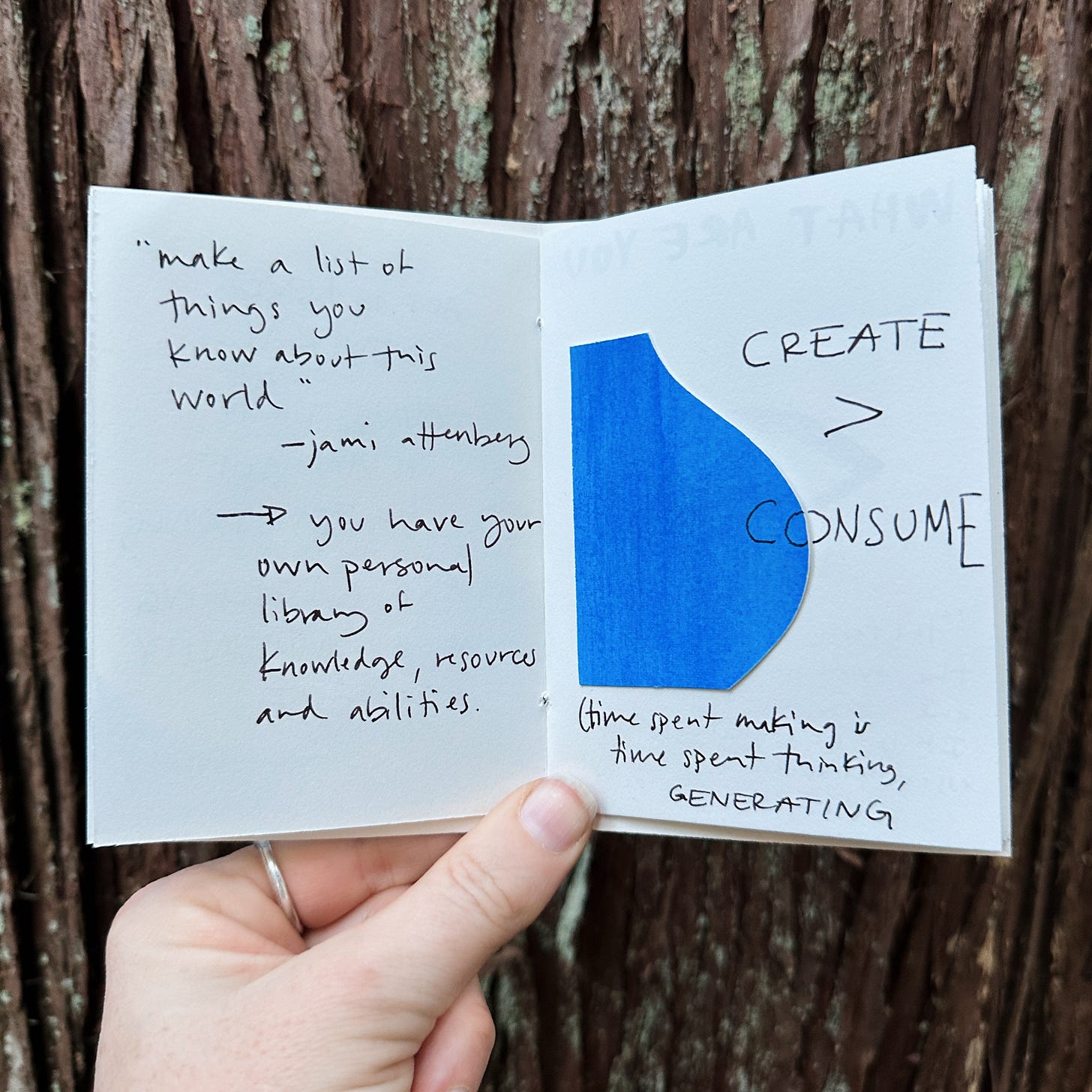 After making my Winter Work zine last week, I felt the need to make another one. Documenting my own thoughts and feelings in an analog way feels important right now, both in the face of politics and the rise of AI. I want us all to be making more art, even if (in fact, especially if, it’s not for distribution).