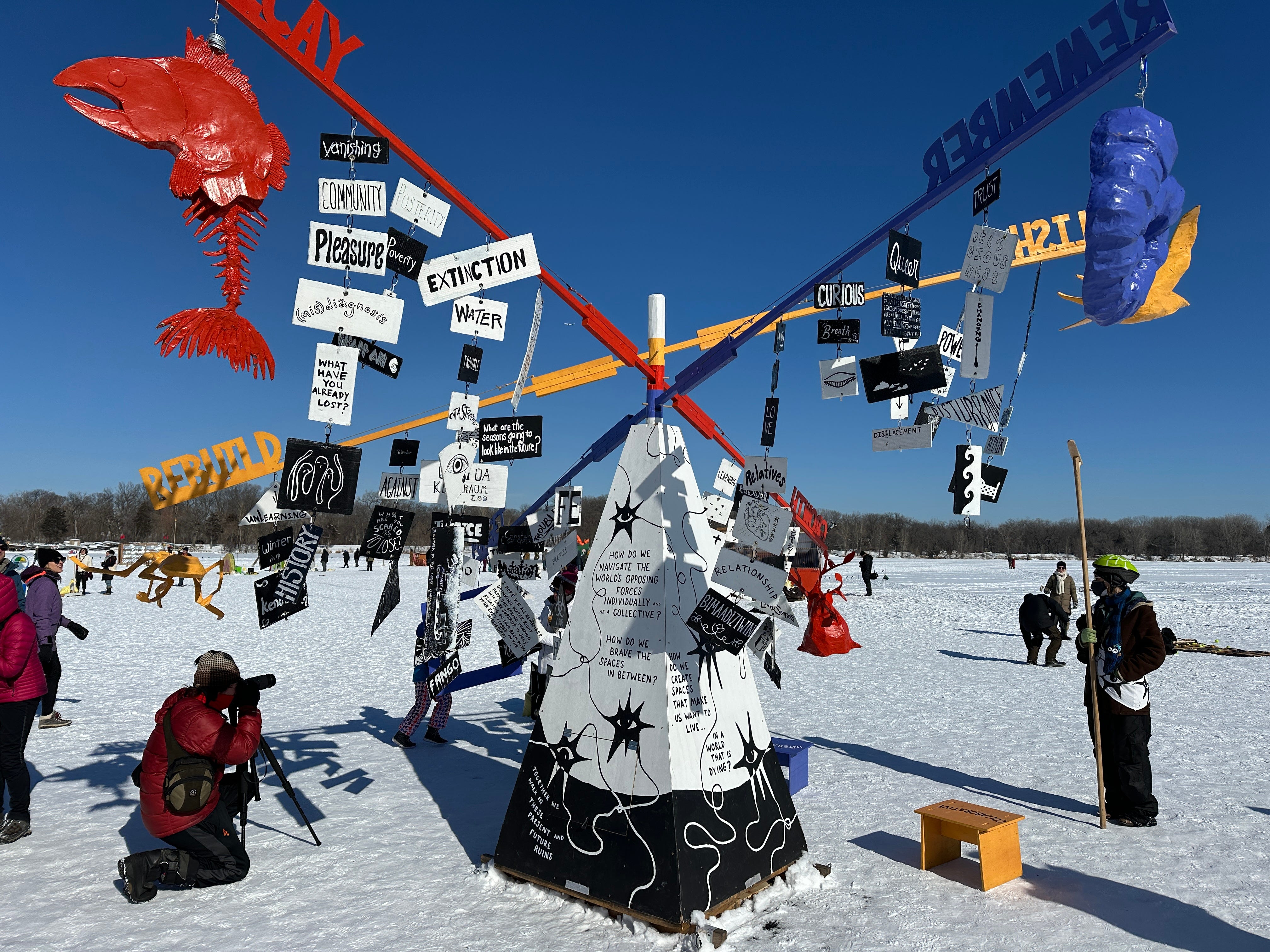 Taking inspiration from pop-up ice fishing villages and huts, frozen Bdé Umáŋ / Lake Harriet becomes a public platform for artists. There are few regulations and building codes—an artist’s dream!