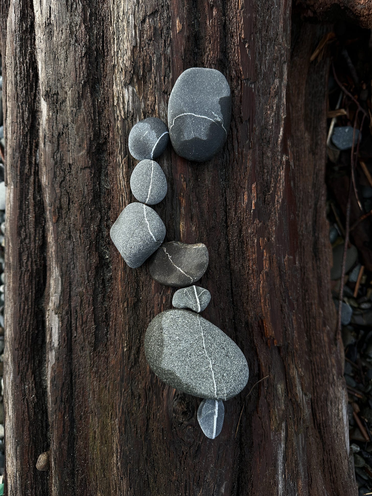 I have assorted beach rocks in pretty much every pocket of every jacket, backpack, and purse that I own. There is a certain grounding feeling that comes with the weight and texture of a rock in your hand. Something to hold you in place for a moment.
